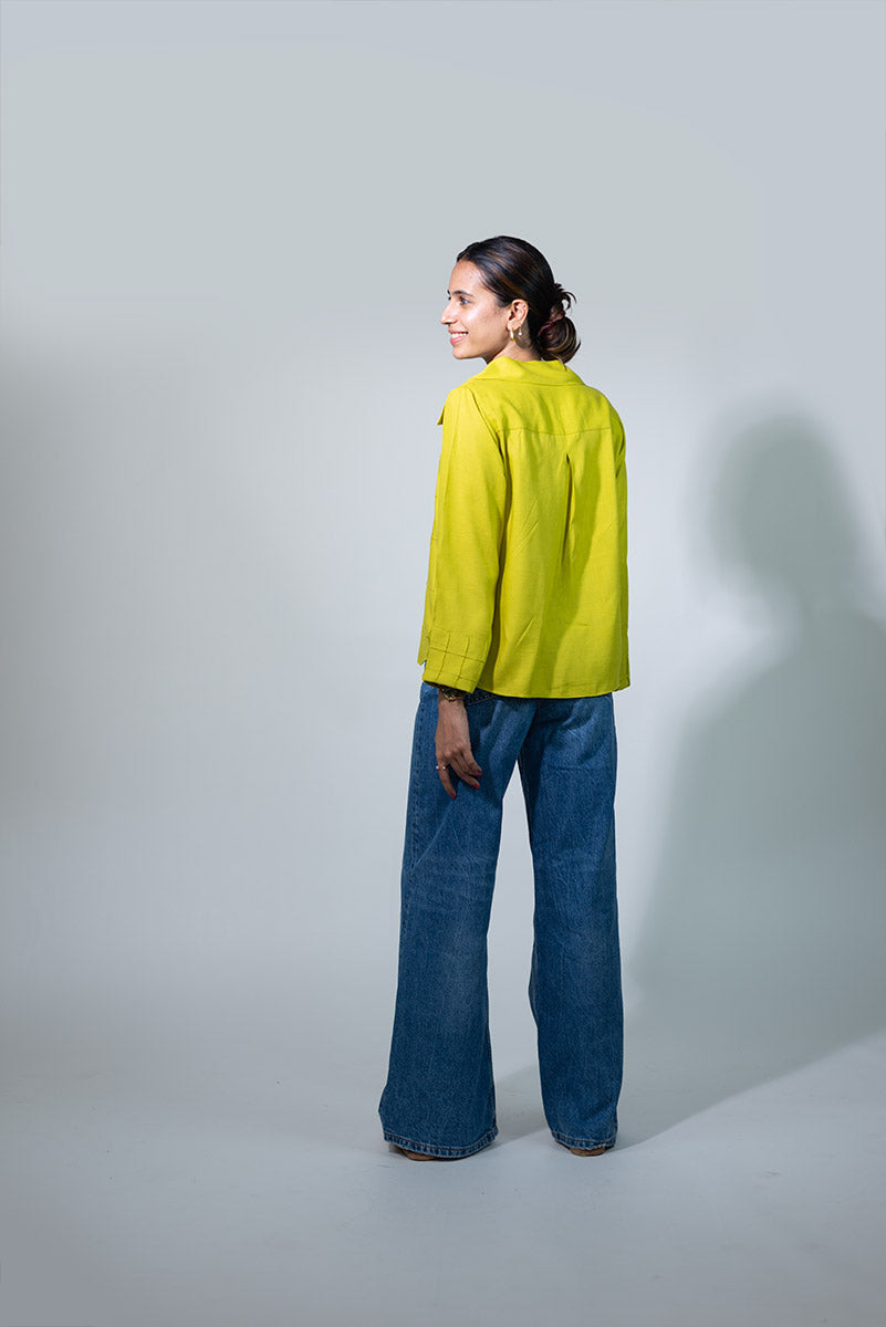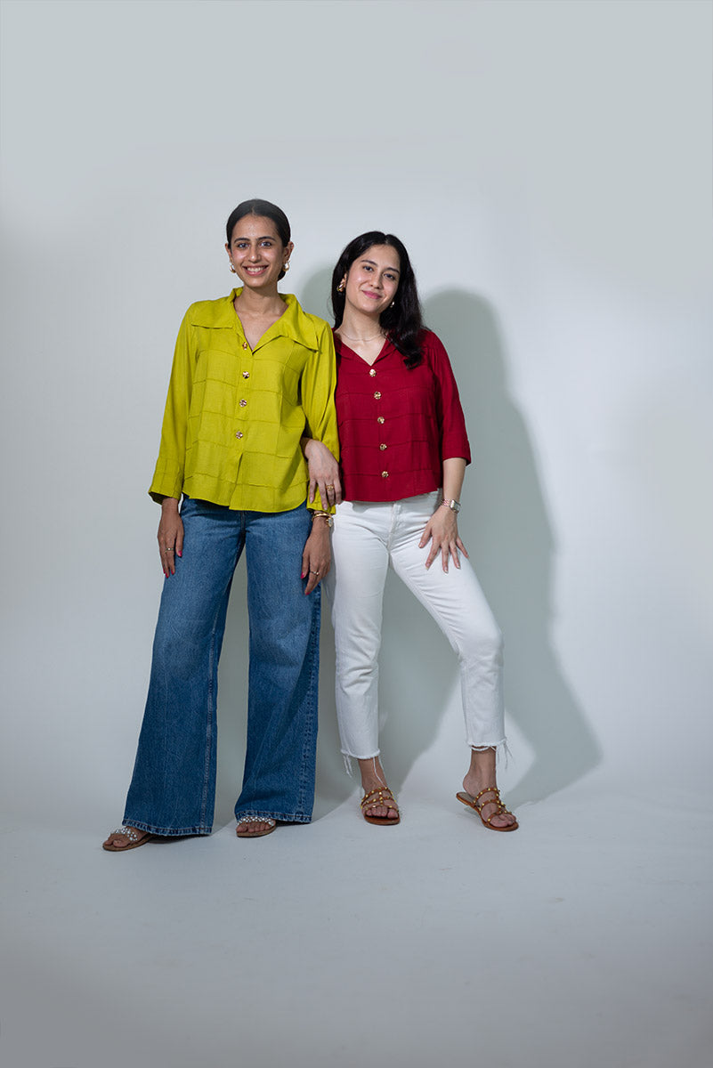 Expertly crafted from Rayon, the Boxed in Shirt features a unique box-shaped pleating effect, adorned with gold button details and a collar. Available in two vibrant colorways, acid lime and scarlett red. For easy maintenance, gently hand wash with mild detergent and lay flat to dry. Stay stylish without the fuss.